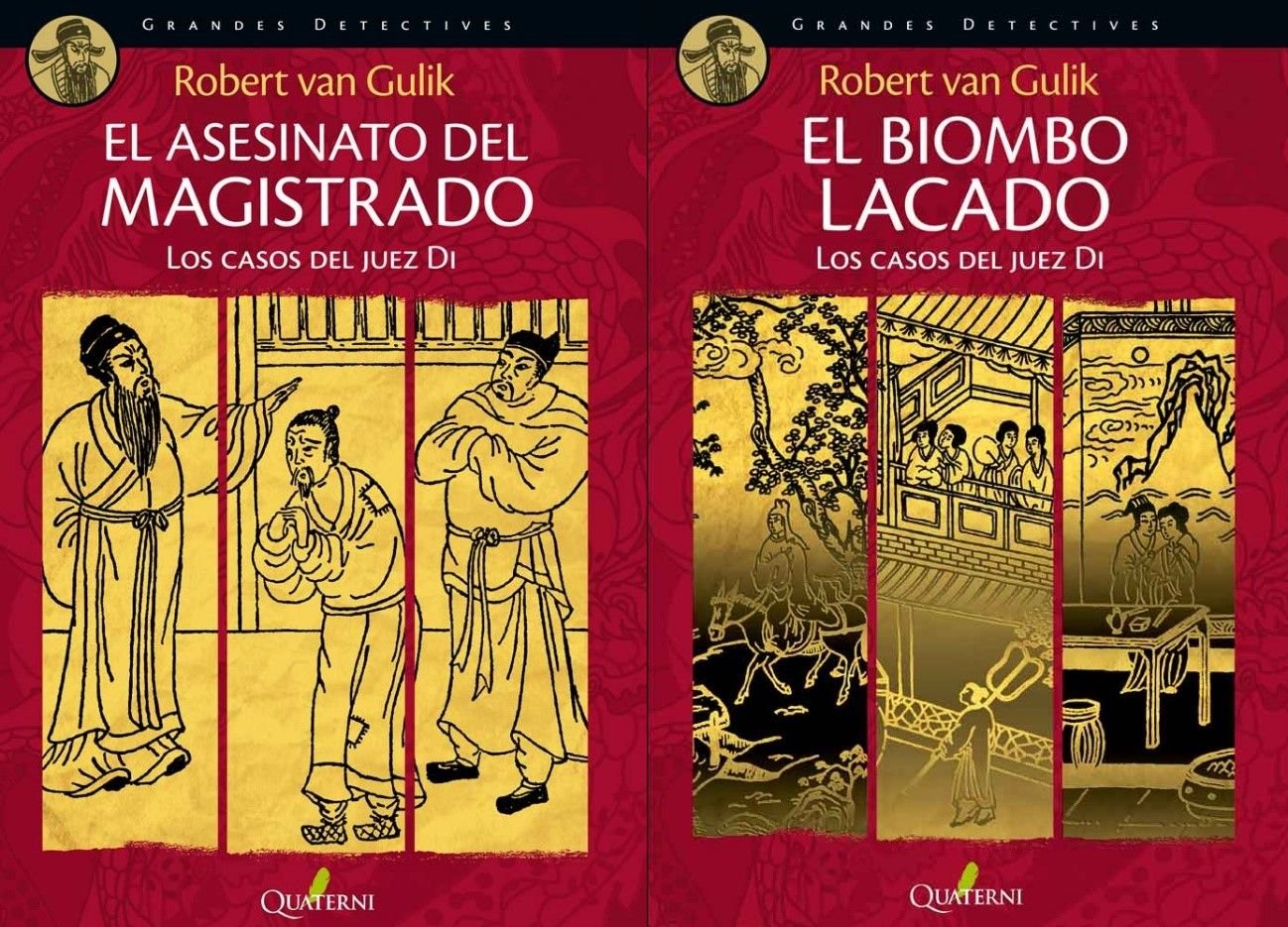 Portada de las obras El asesinato del magistrado. Los casos del Juez Di y El biombo lacado. Los casos del Juez Di, escritas por Robert van Gulik y traducidas y editadas por Quaterni Editorial.