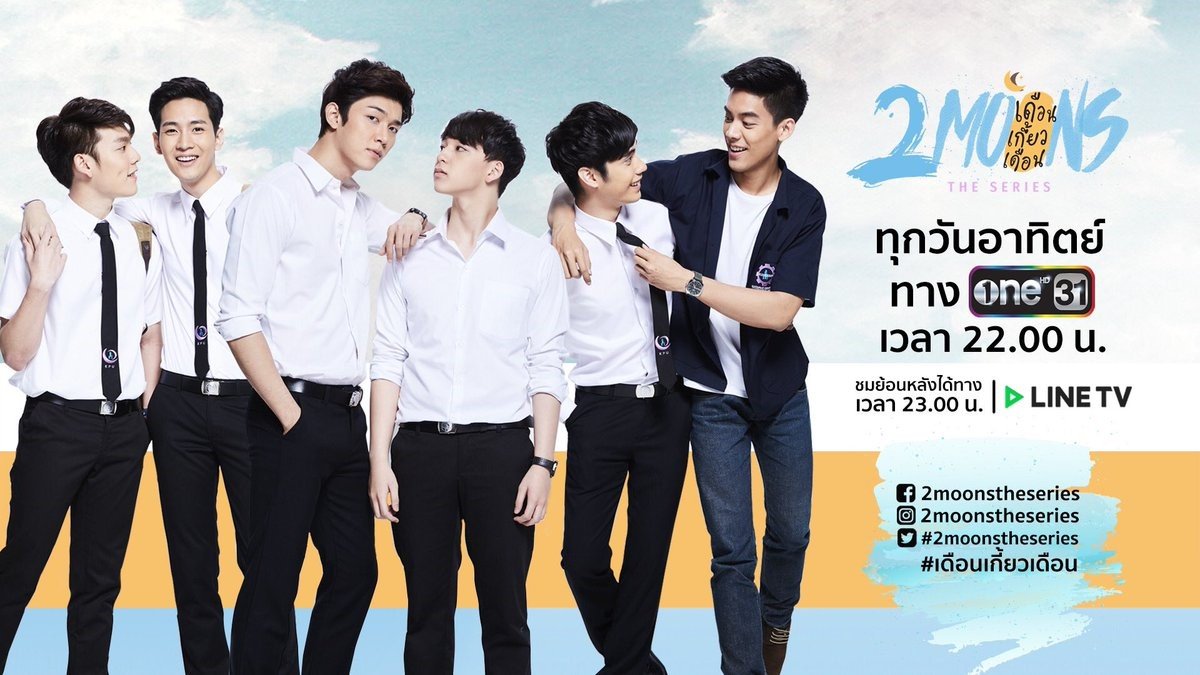 2 Moons The Series se enmarca dentro de esta estela BL, siendo la adaptación a la pequeña pantalla de la novela Two Moon escrita por Chiffon Cake. También como es muy habitual en los dorama de este tema, no solo hay una pareja principal, sino que son tres. Estas son Phana (Thanit Itthipat) y Wayo (Pinnirat Suradej), el dúo de personajes que más veces aparece en pantalla, ya que el protagonista de la serie es, en cierto modo, Wayo; Ming (Khemmonta Varodom) y Kit (Kerdthongtavee Panuwat), también apodado KitKat y Kitty, aquellos que más momentos divertidos harán pasar al espectador, y Forth (Kreepolrerk Darvid) y Beam (Jarujittranon Tanapol), quienes no tienen apenas relación entre ellos, aunque parece ser que serán pareja en la próxima temporada (la segunda parte de la serie está confirmada, y se rumorea que podría haber incluso una tercera).