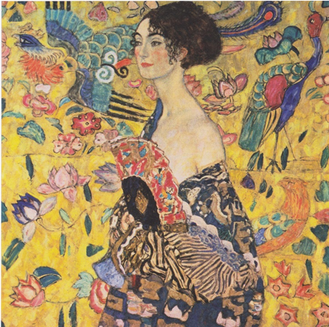 Abanico de la escuela Tosa donde se retrata a la escritora de la corte Heian Murasaki Shikibu, autora del Genjimonogatari.