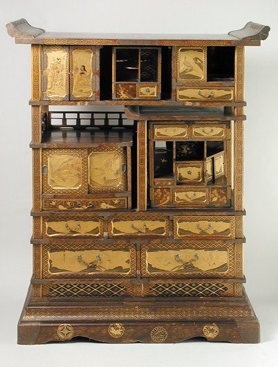 Del máximo interés resultan algunas parcelas de la colección japonesa, concretamente, las lacas y los inros. Dentro de los muchos objetos lacados que conforman la Colección, pueden encontrarse desde piezas de menaje hasta muebles, pasando por un importante conjunto de cajas de muy diversas funciones: desde suzuribako (cajas específicamente diseñadas para guardar los objetos de escritura) hasta bentô-bako o cajas para picnic. Por otro lado, también posee gran importancia la colección de inrô, [2] algo más de setenta, algunos provenientes de las grandes colecciones europeas de la época del japonismo en el siglo XIX. Por supuesto, no pueden olvidarse en este apartado los grabados ukiyo-e (tanto del periodo Edo como posteriores) y libros ilustrados, entre los que se encuentran obras de relevancia como los 15 volúmenes que conforman el Hokusai Manga.