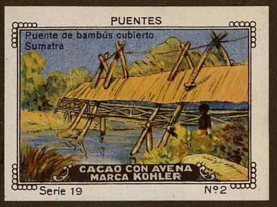La siguiente referencia es también arquitectónica, para encontrarla debemos saltar a la serie XIX, dedicada a puentes. Destacan los ejemplos de ingeniería occidentales, dentro de los cuales Venecia tiene, de manera lógica, una posición destacada, si bien entre estas obras se ofrece un ejemplo de un puente de bambú, cubierto, procedente de Sumatra. Más allá del ejemplo particular (demasiado genérico y alusivo a una arquitectura relativamente efímera como para identificarlo), recoge una tipología constructiva propia de Indonesia.