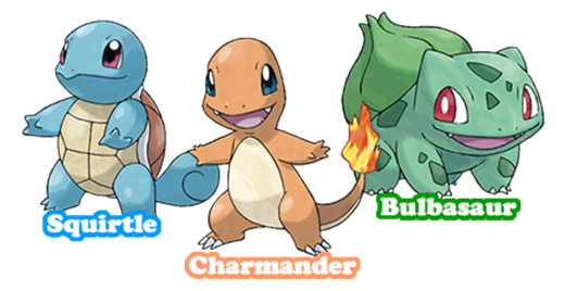 Evoluciones y tipos de los Pokémon iniciales de Kanto. Imagen procedente de “pokeclub + videospoke”.