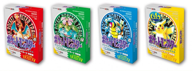 En la imagen se muestra la edición remasterizada para la consola Nintendo 3DS de las primeras ediciones de videojuegos de Pokémon que Nintendo ha relanzado con motivo del 20 aniversario de la franquicia.