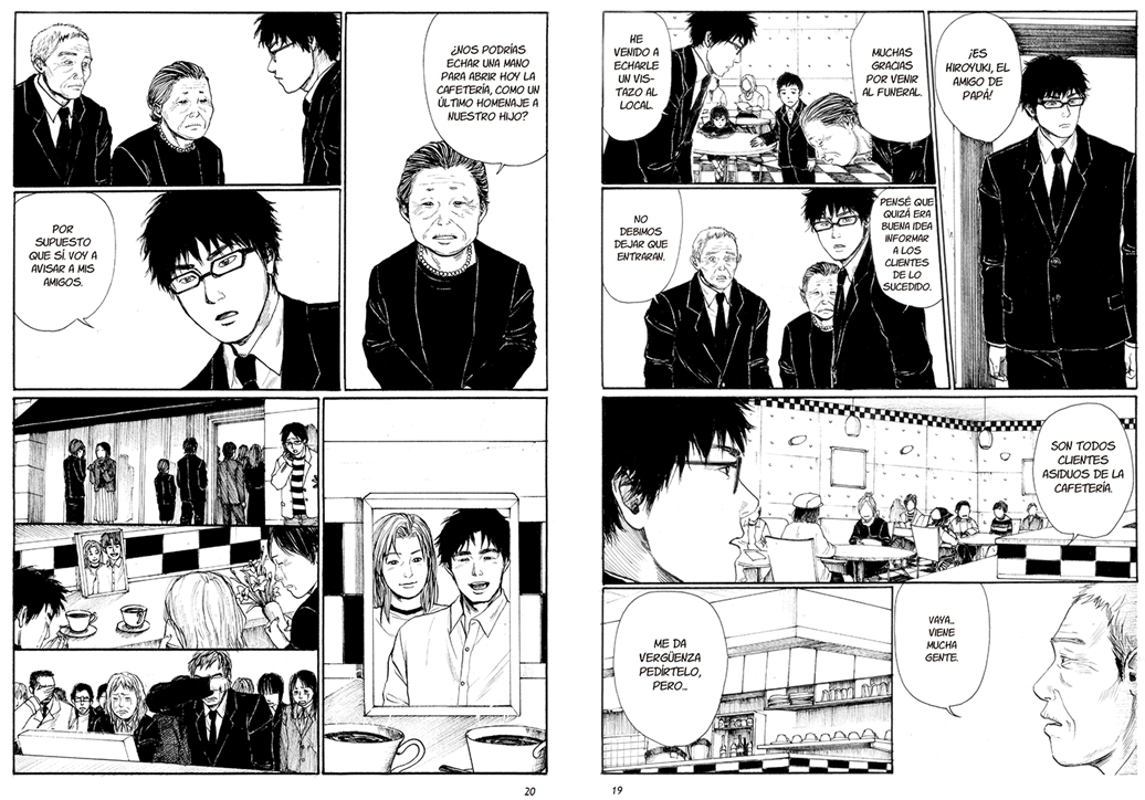 Tras el funeral, Genjiro y Tome deciden ir a visitar la cafetería que habían regentado su hijo y su nuera, el Café Crab Creek. Se trataba de un establecimiento con una clientela constante y con muy buenas críticas, pues destacaba por las dotes de barista de Ryuta y por las excelentes creaciones reposteras de Atsuko; tanta era su popularidad que el público se amontonaba en el exterior del establecimiento a pesar de que estuviese cerrado.