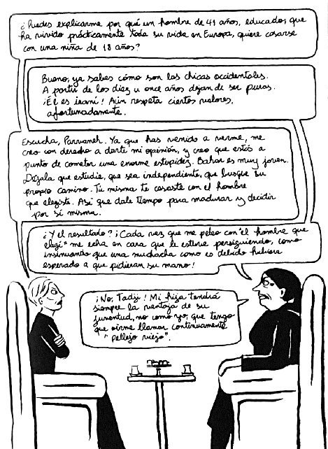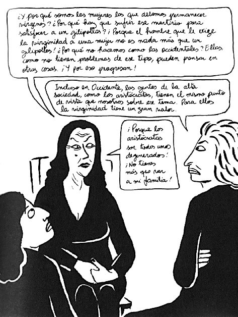 En ella, Satrapi vuelve a remitirnos a su historia y a sus recuerdos personales del Irán de los Ayatolás para narrarnos, en un tono mucho menos ambicioso y distendido, las historias y opiniones de una serie de mujeres sobre temas como el sexo, el amor, la belleza y el matrimonio, que disfrazados mediante la cotidianidad del rumor y la anécdota reflejan algo mucho más trascendental: la opresión de la mujer en una sociedad –la del Irán islamista– que en el fondo no está tan alejada de la que vivimos en nuestro país hace unas décadas.