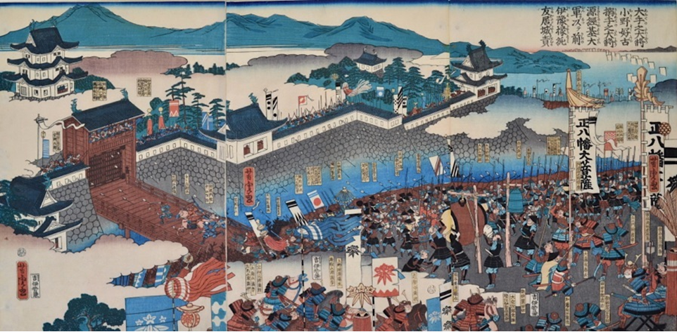 En el tríptico Ataque a un Castillo de Utagawa Yoshitora del año 1864 se refleja perfectamente el caos y la tensión que se producía durante el asedio a una fortaleza. El ejército atacante se abalanza sobre el puente y la puerta principal mientras los defensores los reciben con una lluvia de flechas. Estas conflictos proveían a los samuráis de multitud de situaciones con las que distinguirse en combate.