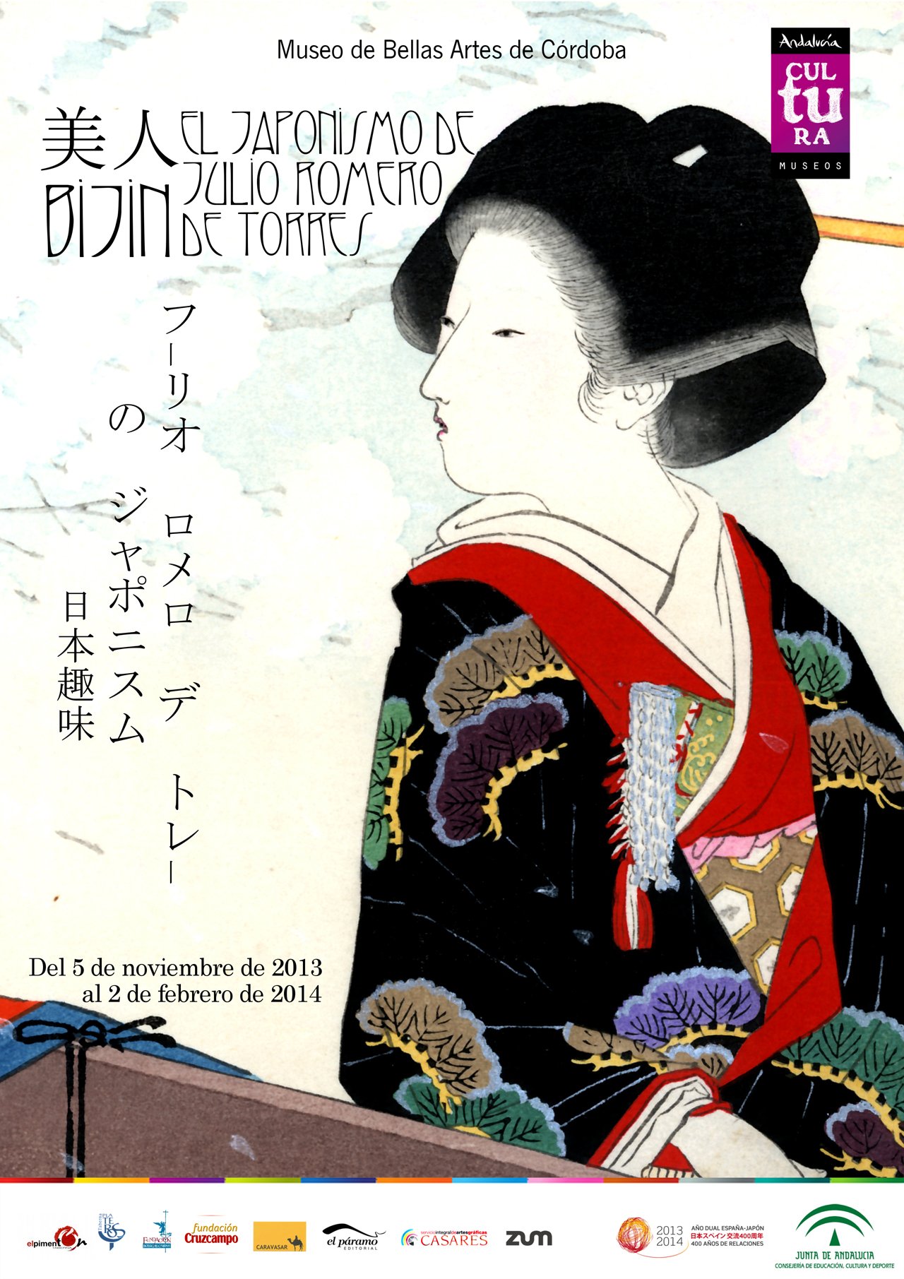 La peculiar pieza, perteneciente a una colección privada, inédita hasta el momento, servía de excusa para articular una pintoresca, y necesaria, exposición en el Museo de Bellas Artes de Córdoba, que debido a su éxito se ha prolongado hasta el 20 de Abril. “Bijin: el Japonismo de Julio Romero de Torres”, organizada en torno al lienzo (pintado en 1907 por encargo del Casino Militar), servía para conectar dos historias de amor que pueden resultar más o menos conocidas hoy en día, pero que son mucho más complejas y ricas de lo que aparentan.