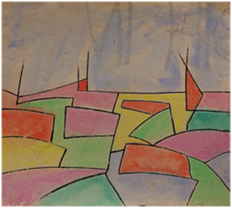 Y a pesar de llevar a cabo semejante viraje formal y estético, Fortún regresaría una vez más al paisaje -en este caso de carácter urbano- con la serie titulada Jugando con Venecia.[7] En ella una vez más -y desde diferentes presupuestos formales-nos ofrece la visión fugaz y poética que tenía de una de sus ciudades preferidas. Las piezas que la componen reflejan a la perfección las sensaciones que le habían provocado los diferentes momentos del día y las diferentes condiciones atmosféricas experimentadas en Venecia y muestran la elevada cantidad de procedimientos técnicos que controlaba, desde dibujos esquemáticos con los que retomaba la figuración naif hasta la representación de estructuras arquitectónicas entre la neblina. Tampoco faltaron propuestas novedosas, como la utilización del dibujo fragmentado -realizado con trazos de diferentes colores- o el sutil empleo de variadas tonalidades cuando así lo exigía el planteamiento del tema. No obstante, hay que señalar que en todas las piezas que la componen existe un denominador común, y que no es otro que el protagonismo concedido a la luz y a los ecos orientales. Del conjunto de su obra en pequeño formato, Jugando con Venecia fue, casi con toda seguridad, la única serie que conoció el público en vida del artista y constituye un placentero paréntesis en su evolución figurativa sin ánimo de profundizaren planteamientos demasiado complejos. Su objetivo fue, sencillamente, plasmar sobre el papel la atracción y el amor que sentía por Venecia, ensayando nuevas propuestas y relegando a un segundo plano sus formulaciones abstractas.