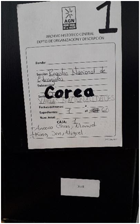 Caja que resguarda los documentos migratorios de los coreanos que llegaron a México en 1905. AGN, México, Registro Nacional de Extranjeros, varias nacionalidades, Corea, caja 1.