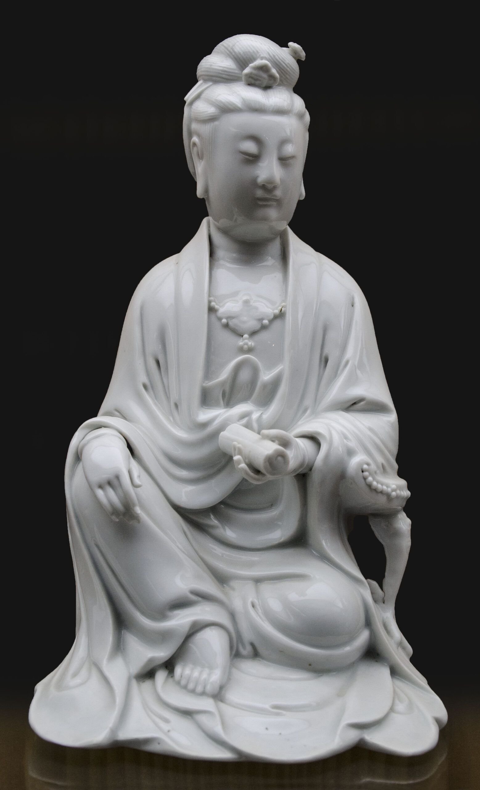 Figura de porcelana de Guan Yin, datada entre los siglos XVII y XVIII y procedente de China. Se encuentra en el Museo de Arte Oriental del Monasterio de Santo Tomás, en Ávila.