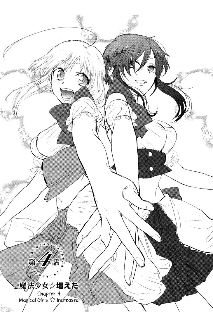 Saki y Sakuyo con sus trajes de chica mágica, esta es una de las portadillas pertenecientes al primer volumen de la serie.