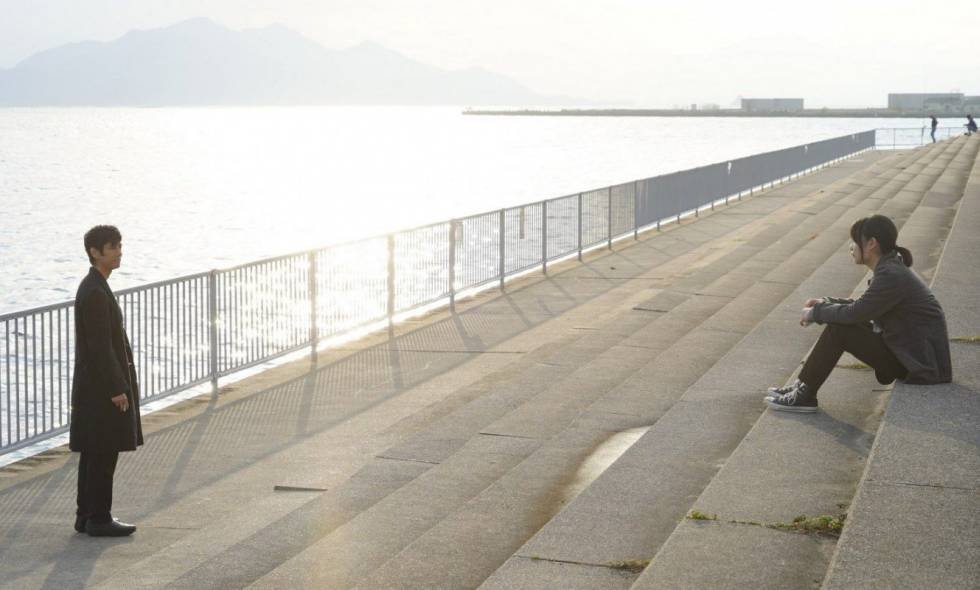 Kafuku y Misaki charlando en un fotograma del filme que permite apreciar el formidable trabajo de fotografía.