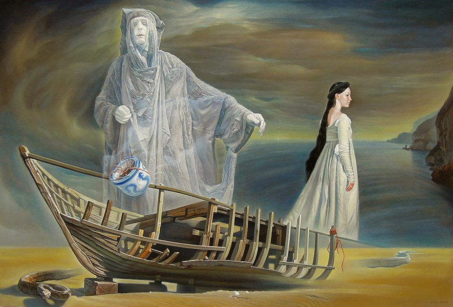 En cuanto al tema, Dinh Dang reconoce que no se inspiró en objetos concretos, aunque admite que los dos botes del primer plano son versiones estilizadas de contendedores de barniz.