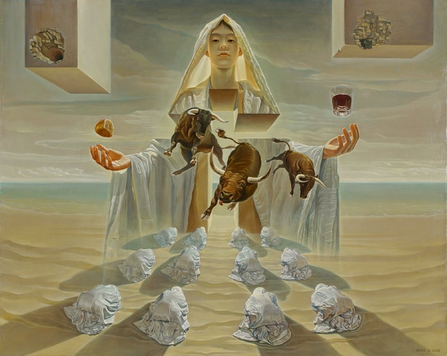 Continuando en la línea bíblica de La comida sagrada (The sacred food, 2001) se encuentra La comida santa (The holy food, 2001). Aquí utiliza una técnica completamente alejada del realismo de La comida sagrada (The sacred food, 2001).