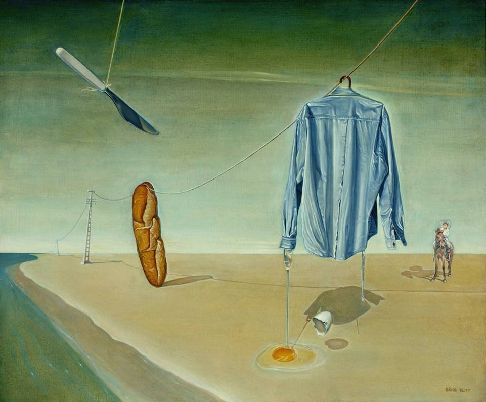 Dinh Dang tuvo la idea de concebir Desayuno sustancial (Transcendental Breakfast, 1997) aunando en una misma composición los alimentos esenciales para él durante el desayuno, como el huevo y el pan. Enlaza con el género de la naturaleza muerta, aunque la forma de colocar los objetos es totalmente surrealista. Esta tendencia la perderá en sus futuros bodegones.