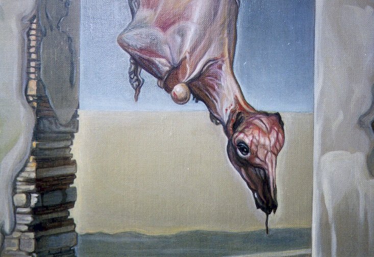 Por otro lado, esta obra es el segundo precedente de los bodegones del año 2000, y está pintada en 1999. El vietnamita se inspiró en un viaje a Grecia (1998) para componer una imagen en la que un carnero desollado cuelga de un gancho. Generó un símil entre esta ilustración y la Crucifixión de Jesucristo.