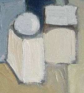 La temática religiosa se mantiene en Naturaleza muerta con urnas de incienso (Still-life with incense urns, 2004). Es uno de sus últimos bodegones, caracterizado por los colores pálidos y neutros que recuerdan a la gama cromática de Composición en gris (Composition in gray, 2001). La pincelada sigue siendo muy matérica, como es habitual en este género, destacando la pesadez de la urna negra.