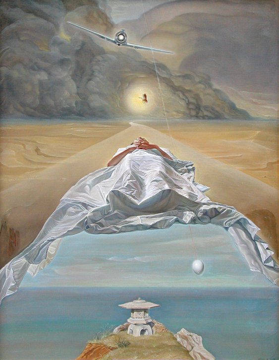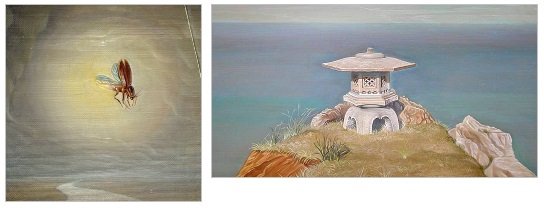 Al despedirse, le dijo a la muchacha que la próxima vez se le mostraría en forma de luciérnaga. Así fue que, a la noche siguiente, Tome vio el luminoso insecto que profetizó Saburo y rompió a llorar. En el folklore japonés, la luciérnaga simboliza el espíritu de los difuntos. Por tanto, Saburo le descubrió a la joven que él tendría un destino fatal, y ella supo entenderlo al observar la luciérnaga. En todo caso, se trata de un relato con tintes legendarios. Dinh Dang figuró la luciérnaga entre el cuerpo del fallecido y el avión, aludiendo a la conexión entre ambas figuras. Saburo sirve como eje de la composición y se sitúa en un plano medio. Su mortaja desvela el registro inferior, cuya calma contrasta con los superiores. En él se presenta un cabo en el que se levanta un toro que conmemora la muerte del protagonista y le augura la protección divina tras su sacrificio bélico.