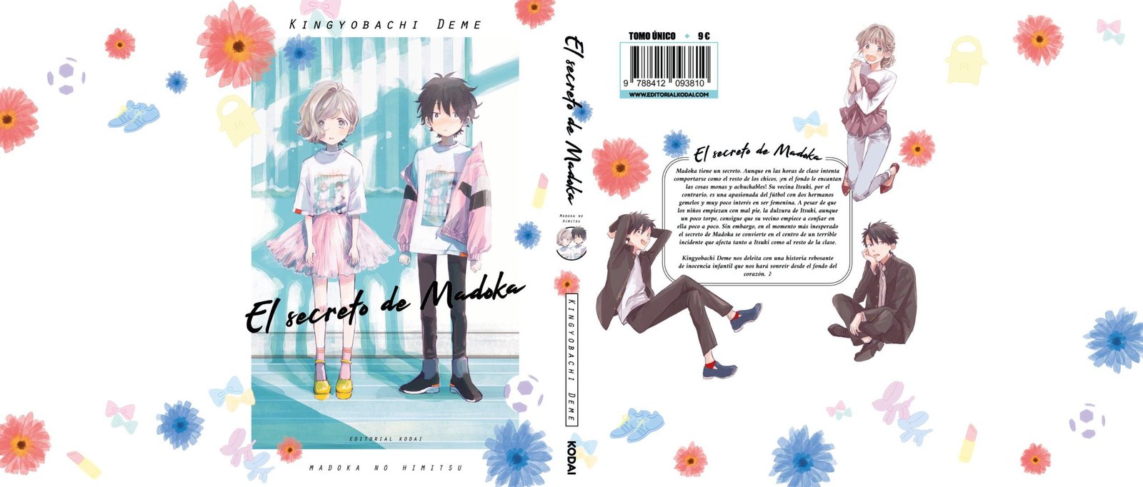 Sobrecubierta desplegada de la edición española de El secreto de Madoka, por la editorial Kodai.