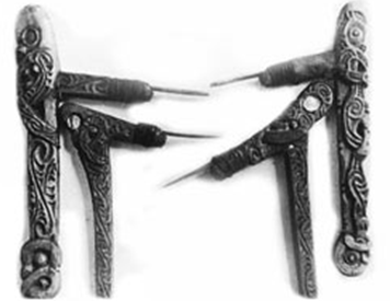 [4] En realidad es tatau. Muchos tatuadores de esta región, han integrado éste término en el nombre de sus estudios como símbolo de identificación con sus raíces.