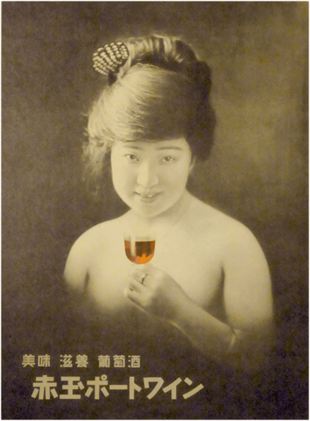 Shinjiro Torii fue aún más allá y tuvo la osadía de utilizar un desnudo por primera vez en la historia de la publicidad japonesa. Con la cantante Emiko Matsushima de modelo y el fotógrafo Toshiro Kataoka, el anuncio de Oporto Akadama de 1922 ganó un premio internacional en Alemania y, además, causó un auténtico escándalo, si bien la desnudez incluía únicamente los hombros y el escote. Torii era ambicioso y su empresa dio un nuevo giro cuando se cruzó con el hijo de una familia de fabricantes de sake llamado Masataka Taketsuru.