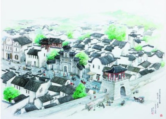 Vista de la ciudad antigua de ShiCheng. Ilustración realizada por Yu Jidong. Col.: National Geographic.