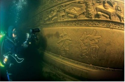 Hace seis años, durante el invierno de 2009, se realizó una de las primeras inmersiones en el lago para explorar estos vestigios arqueológicos que han pervivido hasta nuestros días de forma casi fantasmal; su finalidad era la de explorarlos debido a la importancia histórica de la ciudad de ShiCheng. Lo realmente fascinante fue la excepcional conservación de la antigua metrópoli, casi de manera íntegra gracias a la temperatura constante del ambiente, que ha contribuido a mantenerla en una especie de cápsula del tiempo bajo las aguas, paradójicamente, intacta a la revolución urbanística que ha transformado China desde su apertura al capitalismo hace más de tres décadas que ha arrasado buena parte de su patrimonio cultural. Asimismo, se sabe que a los pies de la montaña se instalaron el centro político, económico y cultural desde el año 621 durante la dinastía Tang (618-907), hasta 1959, cuando se construye el lago artificial.[5]