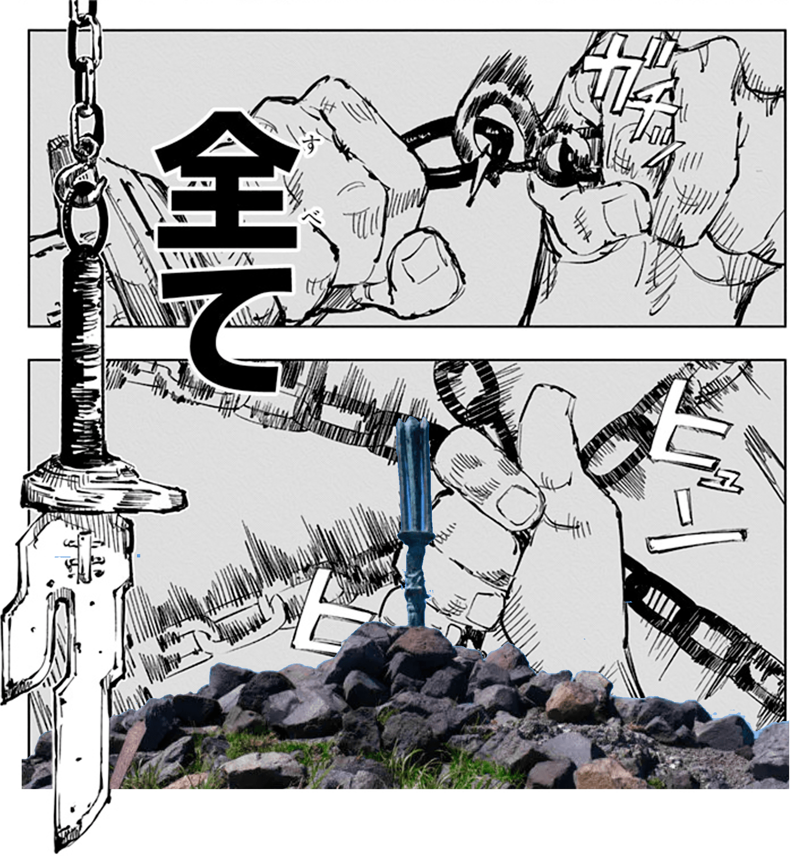 Ama no Sakahoko en el manga y la estatua.