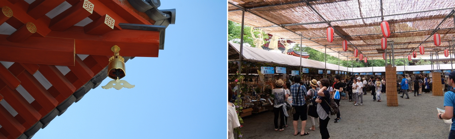 Fûtaku que todavía se conservan en algunos templos budistas de Japón (izquierda) y el Kawasaki Daishi Fûrin Ichi en 2016 (derecha).
