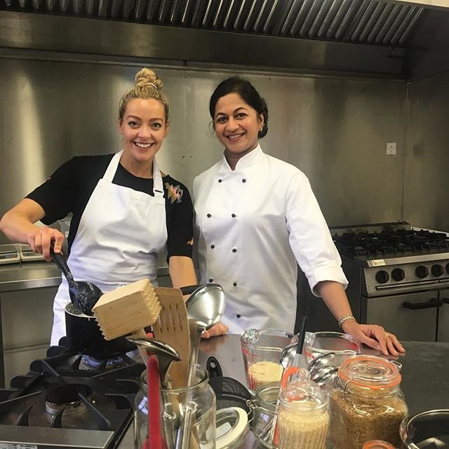 Cherry Healey y la chef Monisha Bharadwaj cocinando el arroz perfecto.