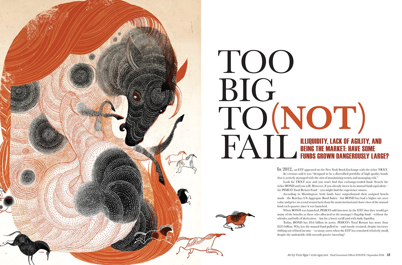 Ilustración de Victo Ngai para el artículo Too Big To (Not) Fail. El vínculo perfecto entre espacio disponible y texto en la mayor parte de sus obras le ha valido al ilustrador el premio “Best use of Illustration”.