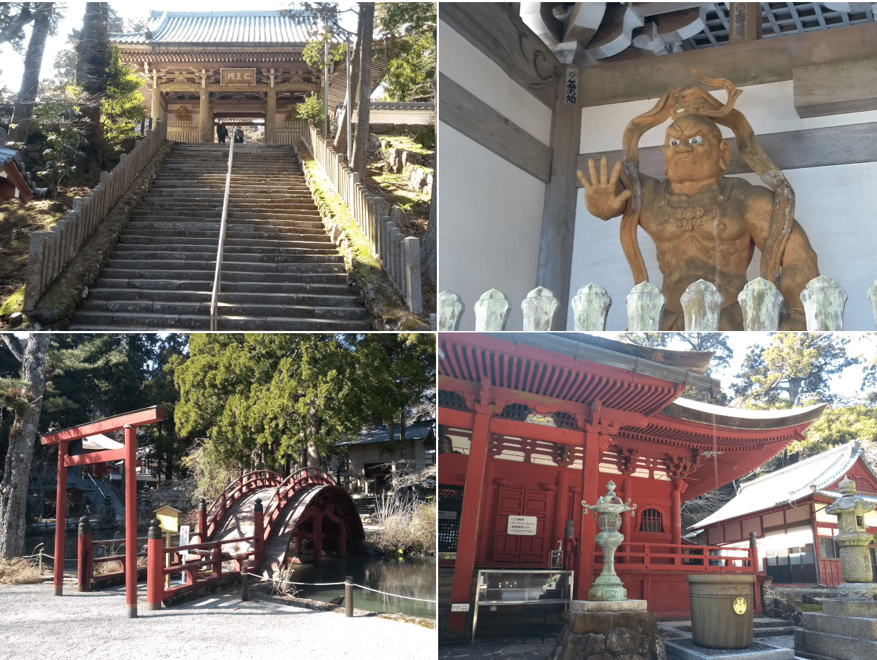 La segunda parte del día consistió en hacer la visita a Asama-yama que había resultado imposible la semana anterior por el mal tiempo. Existe un camino de montaña que parte del Naikû por el que se puede subir a la cima tras unas dos horas de escalada. Sin embargo, para esta ocasión los organizadores decidieron llevarnos en autobús hasta el Kongôshô-ji, el templo que se se encuentra en lo alto y que cuenta con un encantador jardín japonés, pagodas, puentes y cuya entrada está flanqueada por dos grandes estatuas de los Niô o guardianes guerreros del budismo.