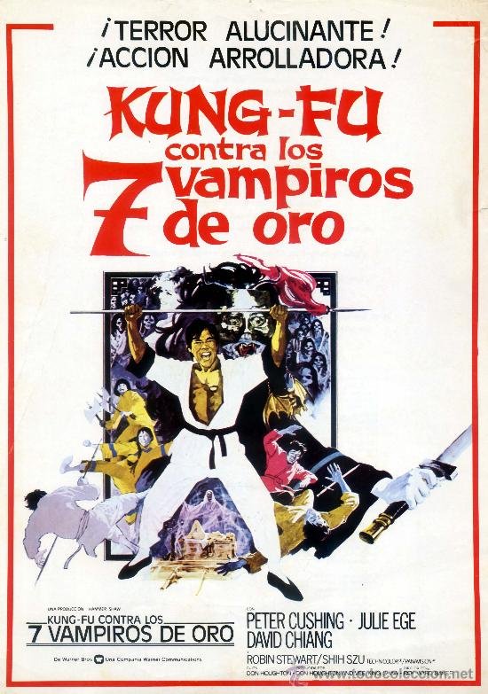 [11] Uno de los ejemplos más destacados de este género es Kung-Fu contra los siete vampiros de oro (1974), una histórica co-producción ente la inglesa Hammer Films –especializada en el terror clásico – y la hongkonesa Shaw Brothers. La película reunía lo mejor de ambos mundos, en la el sacerdote de una secta de jiangh shi, los siete Vampiros de Oro, requiere la ayuda del legendario Conde Drácula, que viaja hasta china y adopta apariencia oriental. Poco después, entre el auditorio del profesor Van Helsing se encuentra un joven chino cuya aldea fue asolada por los Siete Vampiros de Oro, que le convence para realizar una expedición en la que dar caza a la secta de jiang shi mediante, entre otras cosas, artes marciales, en las que son expertos el joven chino y sus hermanos. Dirigida por Roy Ward-Baker y protagonizada por los veteranos Peter Cushing y David Chiang, la película mezclaba terror, humor y kung fu, y se esperaba que complaciese a los espectadores de estos géneros; sin embargo, fue un fracaso en taquilla que hizo abortar la que podría haber sido una más que fructífera colaboración entre ambas productoras. Otro ejemplo más temprano, aunque en el que los jiang shi no juegan un papel protagonista es The Brave and The Evil (1971), verdadera película de culto del Kung-Fu clásico de la que han bebido numerosos directores de Oriente y Occidente, como Quentin Tarantino; también en la célebre película histórica de Kung-Fu clásico, Kid From Kwangtung (1982), de los Shaw Brothers, aparecen los jiang shi.