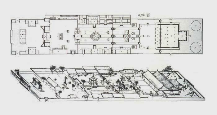 Planta y dibujo de la Gran Mezquita de Xi’an, Shaanxi (siglos XIV-XVI). Fuente: www.islamic-archcorner.blogspot.com