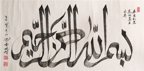 La caligrafía china es la escritura viva más antigua del mundo, ya se aplicaba a la arquitectura cuando el Islam llegó al imperio Tang (618-907). En los edificios de culto islámico encontraremos inscripciones escritas en tres idiomas diferentes: en árabe, en persa y en chino. En un primer momento, las comunidades musulmanas construyeron mezquitas con inscripciones en árabe, pero mientras estos edificios religiosos fueron adoptando las formas de los templos y los palacios tradicionales, fueron combinándose en su interior los tableros de madera que integraban caracteres chinos y letras árabes. Con el tiempo, se fue desarrollando lo que se denomina escritura sini, que parte de la caligrafía árabe adoptando la estética de la caligrafía china. Puede encontrarse en trabajos de caligrafía y en el interior de las mezquitas. Durante siglos, quienes utilizaban este tipo de caligrafía no eran bien vistos en otros países, porque este estilo se consideraba una corrupción de la escritura, pero este pensamiento ha cambiado, y actualmente algunos de estos calígrafos son reconocidos internacionalmente, siendo sus obras expuestas en museos de todo el mundo.[26]