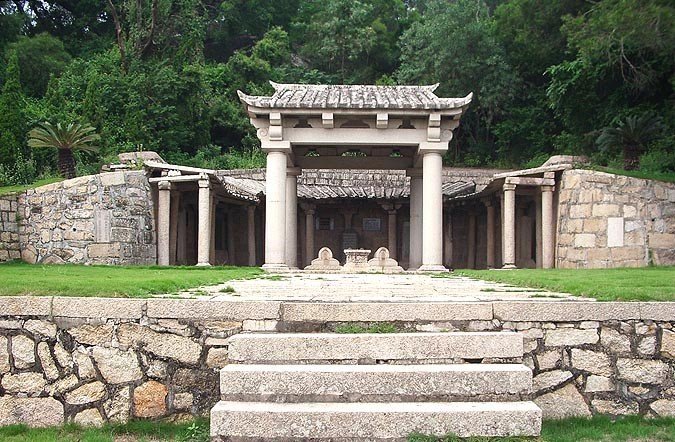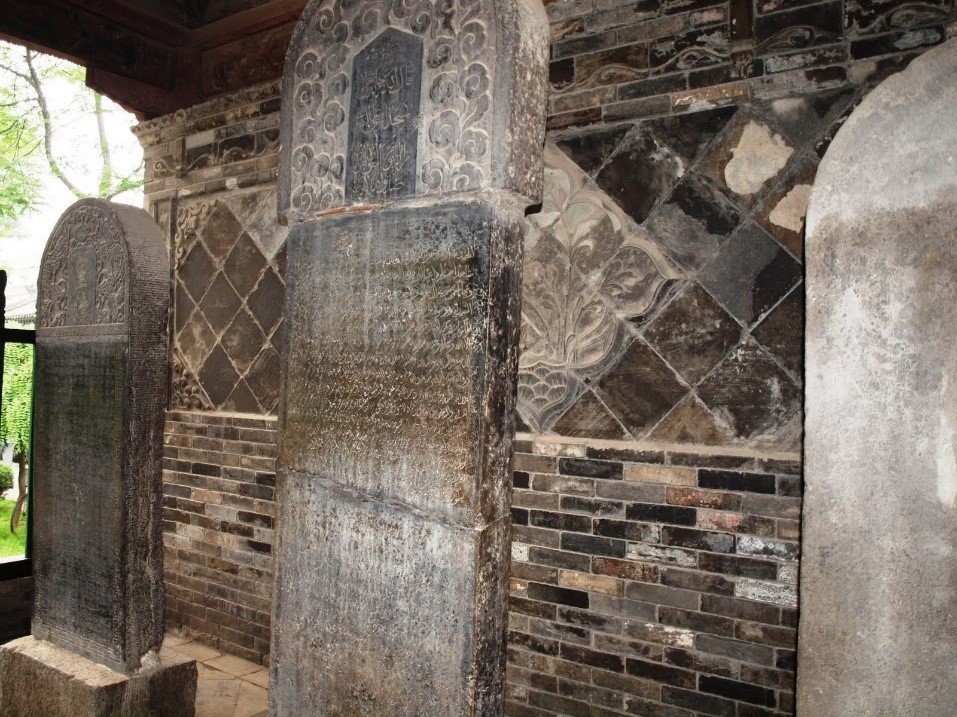 Algunas de las mezquitas más antiguas de China conservan estelas de piedra que conmemoran a los primeros habitantes musulmanes de la zona. Desde época temprana comenzaron a erigirse monumentos funerarios en honor a los misioneros y las figuras públicas de las nuevas comunidades, y, a la vez que se creaban los nuevos barrios y edificios religiosos, también se construyeron cementerios. La Tumba Sagrada de Quanzhou era el cementerio común de los misioneros árabes de la zona. Se trata de una estructura columnada situada en la montaña, que protege dos antiguas tumbas sobre las que se encuentra una tablilla conmemorativa de piedra escrita en árabe, datada de 1323, y lápidas escritas en chino, árabe y persa. Según la tradición, bajo estas tumbas se encuentran los restos de dos de los cuatros misioneros que serían enviados a China por el Profeta, por lo que se conoce como uno de los espacios más antiguos del Islam en el país. En Cantón se encuentra otra de las tumbas de estos viajeros, conocida como Tumba de Woges, donde descansaría el cuerpo de Saʿd ibn Abi Waqqas, tío materno del Profeta. El cuarto compañero, Burhan al-Din, se hallaría enterrado en Yangzhou, en la que se conoce como Tumba de Puhatin.[9]