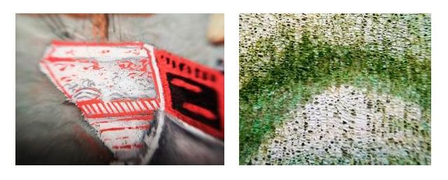 Detalles de pinturas al gouache en las que se aprecia el uso del blanco de plomo.[8]