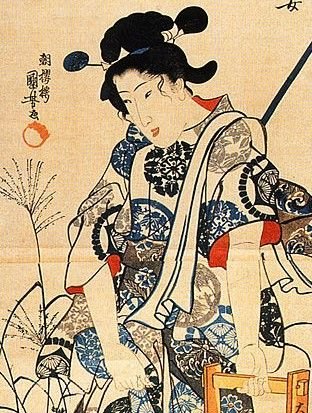 Chiyo (1703-1775), maestra del haiku a quien Tablada dedica su obra Un día… junto a Bashô. Pintura: Utagawa Kuniyoshi.