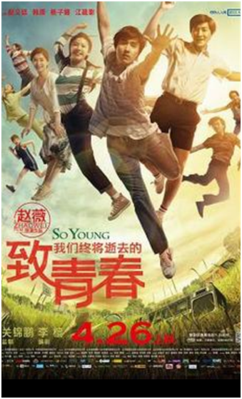 So Young (China, 2013) es un drama romántico basado en la novela To Our Youth that is fading away de Xi Yiwu, con guion de Li Qiang y bajo la dirección de Zhao Wei (Wuhhu, Anhui, China, 12 de marzo 1976). Más conocida como actriz por su papel de la chica virago pobre Xiaoyanzi que llega a ser princesa por accidente, una especie de Cenicienta en versión china en la teleserie El regreso de la princesa Pearl (1998-1999), Zhao Wei es graduada de la Academia de Filme de Pekín y con esta cinta hace su debut como directora. Se dice que el guion fue escrito con la idea de que ella desempeñaría el papel principal, pero al final lo rechazó prefiriendo dirigir la cinta, basando algunos elementos en su propia experiencia como estudiante. La película recaudó más de cien millones de dólares y se ambienta en los primeros años de los noventa cuando el país estaba envuelto en una serie de reformas económicas y disfrutaba de un periodo de relativa apertura a influencias de Occidente.