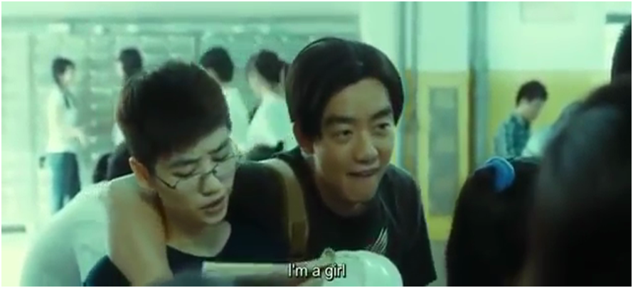 Fotograma de Zhu Xiaobei, mostrando claras señales de dolor emocional por no poder ser aceptada como chica por los chicos del filme So Young de Zhao Wei (2013)