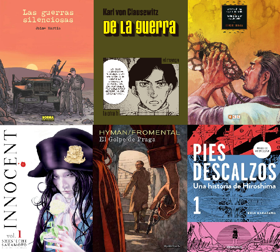 Dentro del campo de la asignatura de Geografía e Historia, por ejemplo, hay muchas obras que podrían emplearse de un modo u otro, pues editoriales como Norma, Herder, ECC, Milky Way, Ponent Mon o Debolsillo han publicado historietas de carácter histórico; ejemplos de ello son Las guerras silenciosas, De la guerra (bajo el sello editorial La otra H), Avatares de una espada memorable / Partitura para un castillo caído, Innocent,[1] El golpe de Praga y Pies descalzos. Una historia de Hiroshima. Cada vez son más las editoriales que tienden a este género, a lo que se suma, por supuesto, el auge que la industria de historietas vive desde 2014.