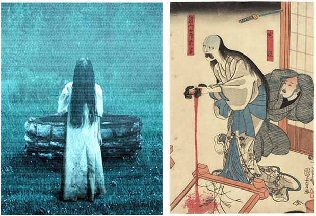 Comparación entre Sadako, en la película The ring, y Oiwa (Fuente: Historia Samurái)