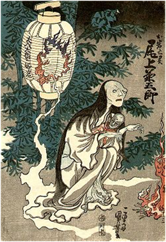[3] Es el nombre típico que se le da al fantasma japonés que vuelve al mundo real en busca de venganza. Alcanzaron una gran popularidad durante el periodo Edo, sobre todo en representaciones de teatro.