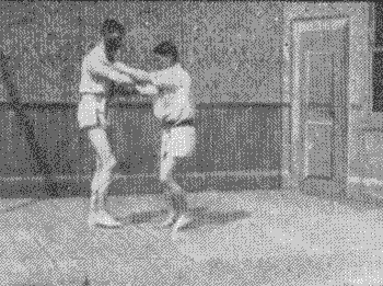 La tónica en esta primera parte del programa, el aspecto defensivo, era sencilla. Raku recurría a su ayudante Etaro Deguchi, más conocido como Deko, uno de sus alumnos. Este aparecía en escena vestido a la manera de un apache, que no era un nativo americano sino un asaltante corriente en la jerga urbana del momento. De esta guisa, Raku de traje y Deko de apache, simulaban típicos asaltos a mano armada, en los que nuestro protagonista reducía sin problemas al pérfido malhechor. A estos se añadían ciertas lecciones específicamente indicadas para las damas, a fin de que éstas tuvieran a su disposición un amplio repertorio de respuestas ante quienes hacían oídos sordos a rechazos de sus encantos.