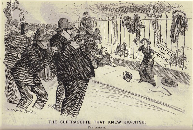 Caricatura de Edith Margaret Garrud como una de las primeras occidentales que fueron aleccionadas en las escuelas de Raku.