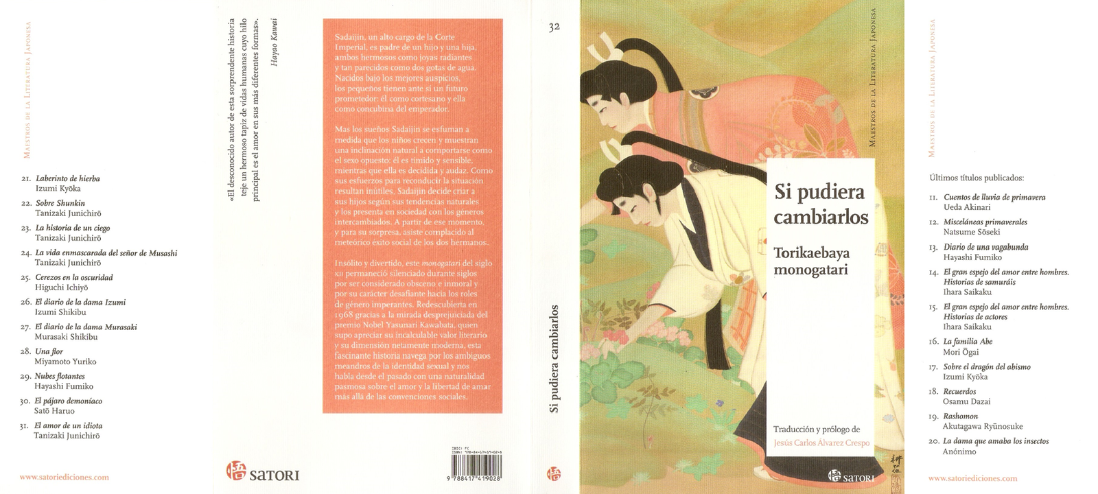 Una de las últimas incorporaciones a la colección Maestros de la Literatura Japonesa de Satori Ediciones ha sido Si pudiera cambiarlos, una novela anónima escrita a finales del del periodo Heian (794-1185), y que, aunque parezca sorprendente, tiene como protagonista indiscutible a la transexualidad.