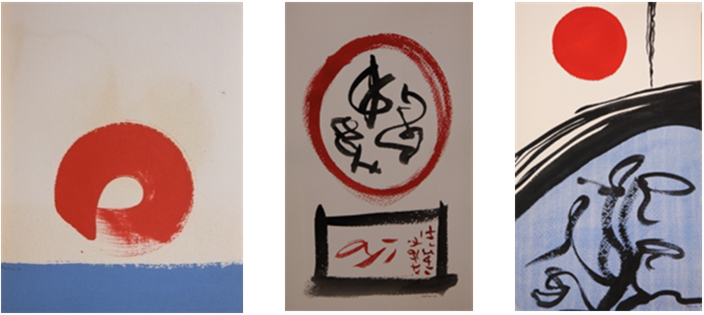 Vistos en conjunto, los Soles de Fortún constituyen una elaborada interacción entre abstracción y figuración, en la que nuestro artista asume planteamientos muy cercanos a la definición de “obra abierta” que por aquel entonces gozaba de gran aceptación en los círculos artísticos internacionales.[5] Además, sus investigaciones sobre el dripping le valieron la dedicatoria de un texto semi teórico por parte de su admirado Antonio Saura, apasionado defensor de dicha técnica en aquellos años. Y es que los Soles de Fortún no tenían como objetivo imitar la naturaleza, sino posicionarse emotivamente frente a ella, planteando al espectador un acto creativo en sí mismo. Durante los dos años que duró esta etapa, Fortún utilizó infinidad de variaciones -dípticos y trípticos son, por ejemplo, habituales-, realizando minimalismos cada vez más atrevidos e introduciendo en sus lienzos la estética Zen. En 1979, el gesto y la caligrafía ya se habían adueñado de sus composiciones y sus últimas creaciones expresaban ya claramente su meditada relación con la cultura nipona (Japón; Variación II, IV y V; El sol; y La luna).