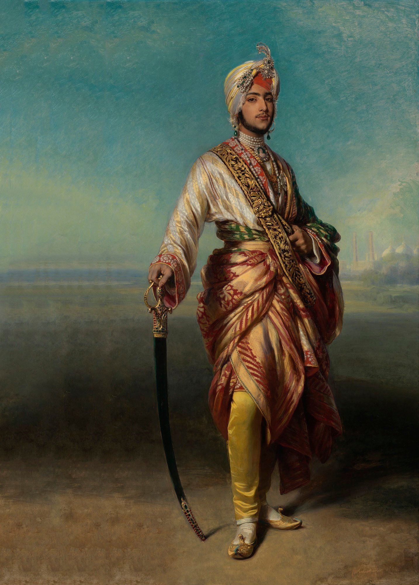 Retrato de Duleep Singh comisionado por la Reina Victoria y realizado por Franz Xaver Winterhalter en 1854. En este óleo, el maharajá porta un retrato en miniatura de la reina.