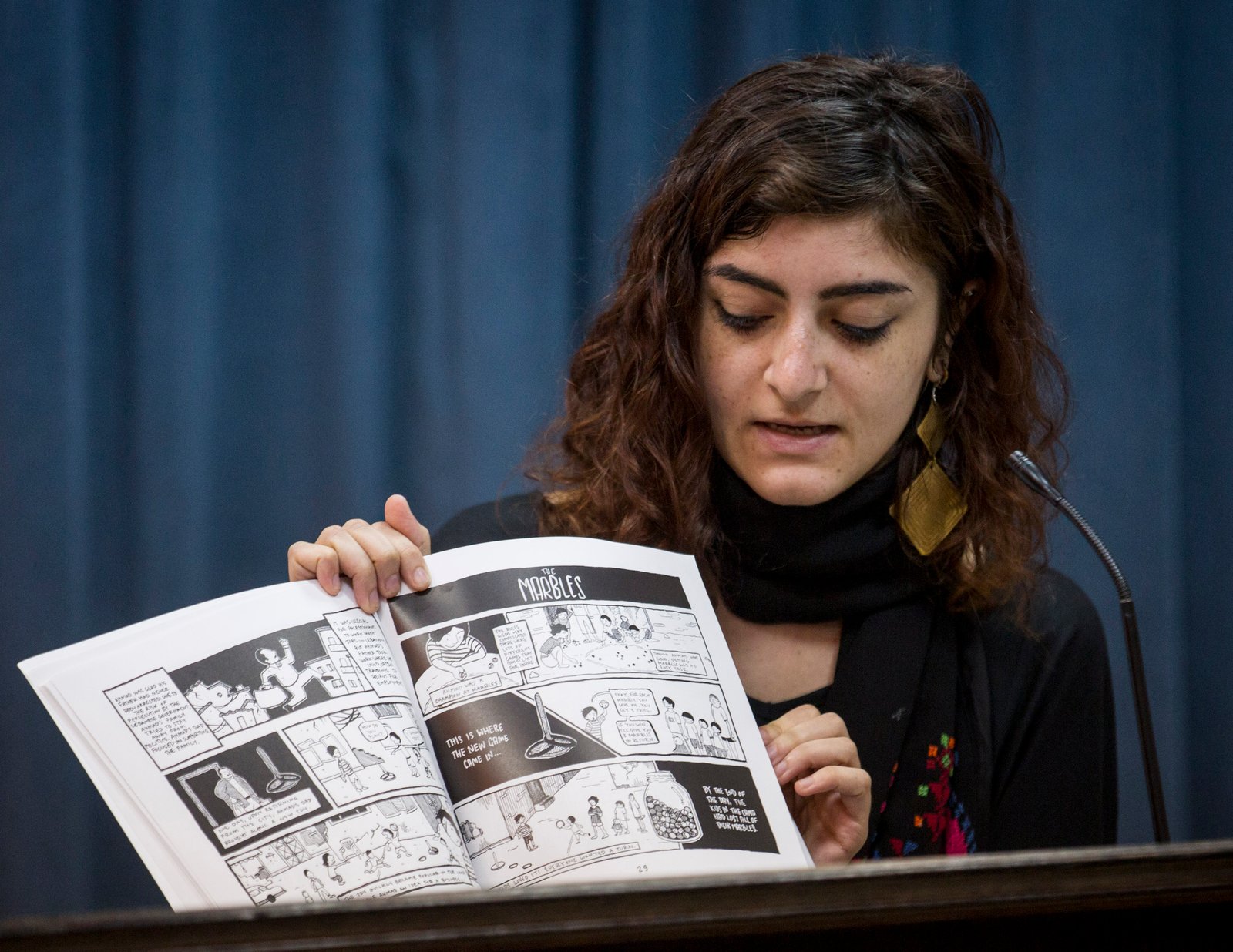 Nacida en Rahst, Marjane Satrapi fue enviada durante su juventud a estudiar a Viena, y más tarde estudió Bellas Artes en la Universidad de Teherán antes de asentase definitivamente en Francia en 1994 y continuar con su educación artística. Perteneciente a una familia occidentalizante de clase alta en Teherán, contraria al gobierno Palehvi y al régimen islamista, es altamente reconocida por una serie de novelas gráficas de inspiración autobiográfica y/o histórica –como Persépolis (2000-2003)[7] y Pollo con ciruelas (2004)–,[8] publicadas originalmente en francés, que han sido traducidas a numerosos idiomas y que, en algunos casos, han sido llevadas al cine. Además, ha ilustrado varios cuentos infantiles.[9] Viñetas e historias sobre la represión más estrictamente contemporánea nos han llegado por parte del iraní Mana Neyestani, colaborador habitual de numerosos diarios de corte progresista en farsi, y autor de la saga “Las aventuras de Mr. Ka” –parcialmente censurada en Irán–, quien, acusado de racismo contra la etnia azerí, fue enviado a la prisión de Evín –destino habitual de presos políticos–, y como resultado de su experiencia publicó (ya asentado en Francia) Una metamorfosis iraní (2012). Francia fue también el destino, esta vez académico y no forzoso, de Zeina Abirached, nacida en una familia cristiana de clase media de Beirut y afincada en Francia desde 2004. Autora de numerosas obras publicadas en francés, como “Beirut-Catarsis” (2006), “38, calle Youssef Semaani” (2006) –ambientadas en la reciente Guerra del Líbano–, son especialmente famosas El juego de las golondrinas (2007) y Me acuerdo, Beirut (2009), novelas autobiográficas ambientadas en el Beirut de la Línea Verde durante la Guerra Civil del Líbano y la ocupación israelí. Recientemente publicó “El piano oriental” (2015), que premio Fénix y fue selección oficial del Festival de Angulema.