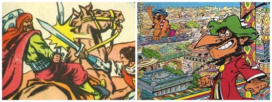 Aunque la realización y comercialización de historietas en el ámbito medio-oriental es un fenómeno que cuenta con cierto recorrido histórico, no ha sido hasta los últimos años cuando algunas de ellas han llegado a las estanterías y pantallas de la esfera occidental. Hasta aquel momento, la presencia de lo medio-oriental en “nuestro” universo del cómic se limitaba a algunas representaciones arquetípicas del Otro incluidas dentro de los grandes mercados tradicionales del cómic –el americano, el europeo, y en las últimas décadas, el japonés–. Como sucedió con muchas otras culturas, la presencia y representación de lo medio-oriental (habitualmente, árabe y musulmán) en el cómic y la iconosfera occidental fue limitada y estereotipada, limitándose muchas veces a la recreación de un pasado medieval épico y/o glorioso, aderezado con tonos fantasiosos (caso de los representados en sagas tan importantes como El Guerrero del Antifaz (1943-1966), de Manuel Gago, o El Capitán Trueno (1956-1968), de Víctor Mora Pujadas y Ambrós); el pasado califal fue también en muchas ocasiones motivo de humor, como sucede en el caso de la longeva –y todavía inacabada– serie de René Goscinny y Jean Tabary, Iznogud, protagonizada desde 1962 por el Gran Visir del Califa de Bagdad, que conspiraba constantemente contra su superior. En el ámbito anglosajón, las representaciones del mundo árabe fueron más limitadas aunque igualmente fantasiosas, estrechamente relacionadas con las producidas en el mundo del cine y el espectáculo.